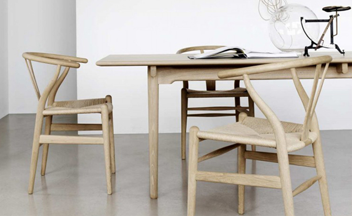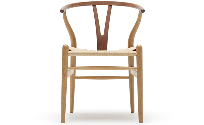 Y椅子是Hans J.Wegner最著名的作品。 它具有重量轻、有吸引力、舒适、中式风格等特点。 该款设计灵感来源于中国传统家具,四平八稳,古色古香,大气自然。上圆下方,浑然天成,深受中国顾客喜欢。Y椅关键在于是工艺与简约的设计,有着清晰的线条。 尽管椅子简约的外观要超过100个步骤进行。除其他事项外,手工编织座垫超过120米的线。 材料有丹麦硬木(橡木,榉木,水曲柳)以及北美硬木(胡桃木,樱桃木)等。外表可漆成各种各样的颜色。 垫子的座位可以添加额外的舒适。