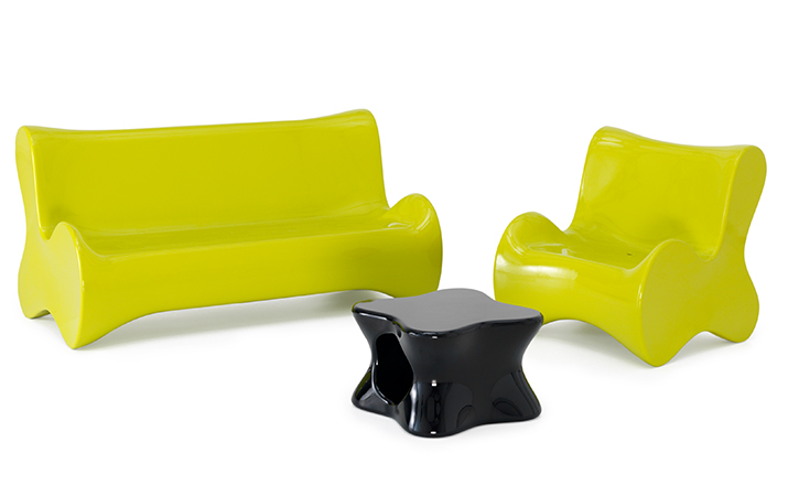 Karim Rashid,当代最耀眼, 最多杰出作品的美国设计师,为西班牙VONDOM品牌设计了50个方案的作品,最终,它们归在6个系列。在这6个系列中,最突出的是DOUX系列, 一个器官造形的,友善的,色彩奔纷的。。。手绘出来的自然形状让你想触摸它,坐在它上面,享受它。 多功能性和未来感是这个系列最突出的元素。DOUX的桌子是多功能的 - 当躺下时,它是一张桌子,在中间的位置有一个孔,可以储存东西;当站立时,它变成了一个优雅的花器或一个可以放香 槟或酒的冰桶。