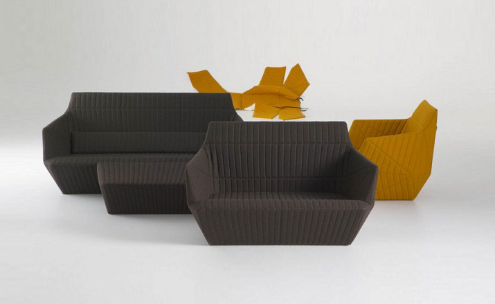 Facett沙发来自写意空间的设计师Bouroullec兄弟,其设计灵感来自于充满童趣的折纸游戏,所以我们能看到产品的造型具有几何色彩,丰富的折线仿佛随时会变出一个个多边形,给人意想不到的乐趣。写意空间Facett沙发不像多数布艺沙发那样走柔美温和路线,它刚毅硬朗的线条仿佛是轮廓分明的男子,给人坚毅的感觉。无论是暗灰还是明黄,冷色还是暖色,都传递出冷冽的质感。搭配在黑白空间里,是最合适的选择。除了造型,Facett沙发采用的布料也很特别,并没有追求植绒的细腻和棉布的柔软,进口布艺充满立体感,非常符合沙发造型的设计理念。家里摆放这么一款家具,即使不使用,单纯用来欣赏也是值得的。