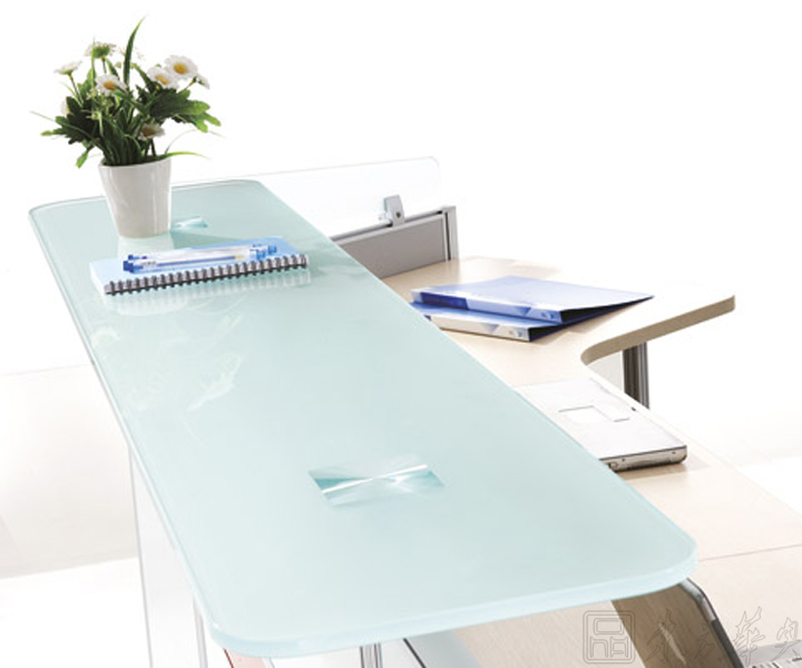 ※  上图为细节展示图,有色钢化玻璃装饰,简洁而富现代感的外观,搭配多元化的桌面及配色设计,令空间富有灵动的变化。