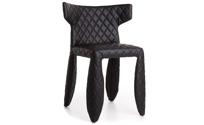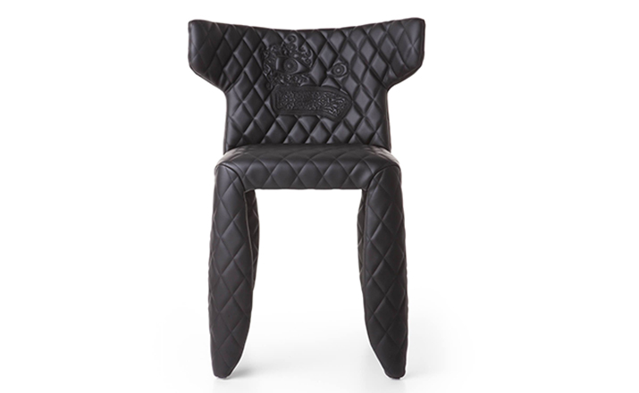 "A soft,puffy and stylish chair with an optional monster face embroidered on the backrest.The monster is a symbol of the eternal battle between opposite forces that take place in life and can be easily recognized inside ourselves,if we have the courage to open our eyes.Scary? Not at all!You forget about the monster once you sit down and enjoy the chair's comfort and softness.Marcel Wanders grew up in Boxtel,the Netherlands and graduated cum laude from the School of the Arts Arnhem in 1988.His fame started with the iconic Knotted Chair in 1996.He is now designing for the biggest European contemporary design manufacturers including Moooi of which he is also art director and co-owner.He works on architectural,interior design and consumer home appliances.His designs have been selected for the most important design collections and exhibitions around the world.Monster chair is offered with a synthetic leather upholstery in black.The chairs can be ordered with or without monster face and with or without armrests. The monster embroidery is identical in both versions."
