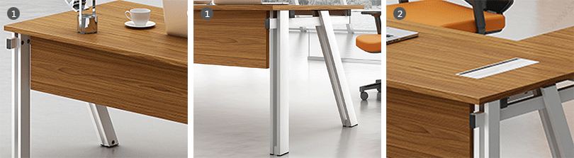 1、钢制脚架,实用高端大气;        2、整齐划一、人性方便的桌面铝合金过线系统。