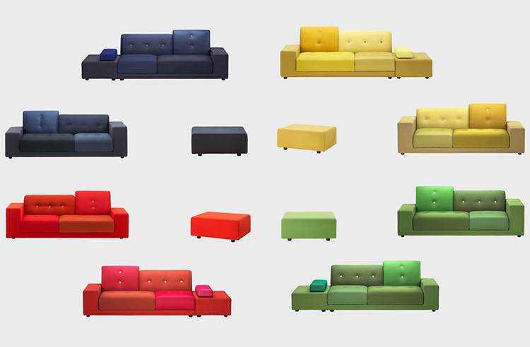 Hella Jongerius的Polder沙发在任何内饰中都创造了一个焦点:它的不对称形状和各种面料和颜色的靠垫赋予它独特的标志性外观。
