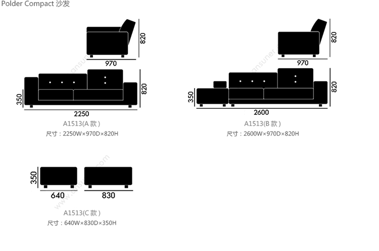 Polder Compact 沙发 系列尺寸/示意图