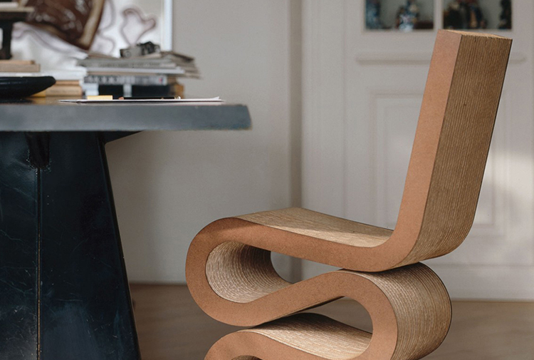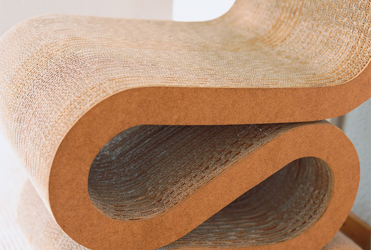 The architect Frank Gehry is known for his use of unusual materials. With his furniture series 'Easy Edges', he succeeded in bringing a new aesthetic dimension to such an everyday material as cardboard.
