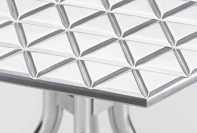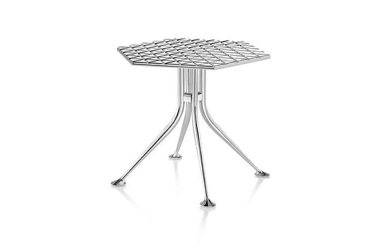 Girard被认为是面料、颜色、图案和纹理的大师级设计师。他的六角形桌子的铝制顶部刻有几何图案,在墙上的光线反射中可以看到。这种有趣的效果与Girard装饰性边桌的冷酷金属美学相得益彰。