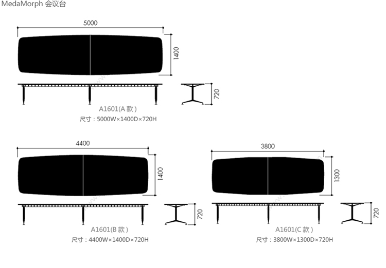 MedaMorph 会议台 系列尺寸/示意图