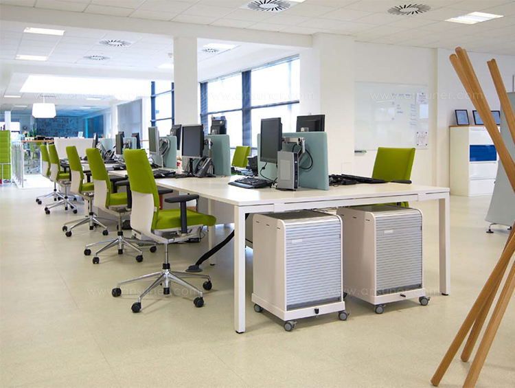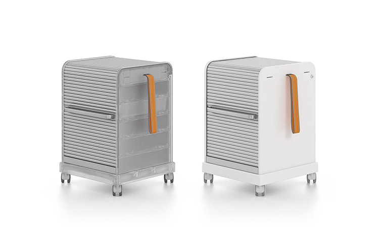 跟随我1和2是坚固,可锁定的移动基座,用于办公室和家庭。 装饰性拉带可以轻松地将手推车从一个地方移动到另一个地方。 一个(跟随我1)或两个(跟随我2)用于活页夹的货架空间和一个带有可移动托盘的集成存储隔间用于纸张和个人物品可以隐藏在移动基座的鼓形快门后面。 两种型号都可以单独配置可选的抽屉和搁板。 较高的Follow Me 2版本是站立高度表的理想伴侣。