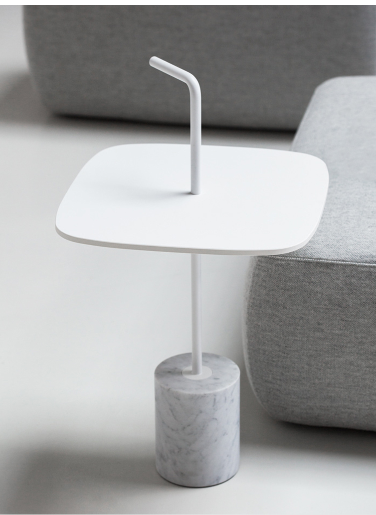 JEY.稳定且可移动。它可以作为一个顶部或便携式的桌子。它有两种不同的高度(45和50厘米)和四种不同的顶部,两种材料和两种颜色。它是一种小型的桌子雕塑,有大理石或水泥底座,管状柱以各种几何图形发展成一个形状的顶部,以一个手柄结束。手柄形状的弯管可以方便地移动桌子,特别是在高频区域(如办公室、酒店、酒吧、餐馆等),但也适用于当代居住环境。它可以与扶手椅、沙发、另一张桌子或另一张Jey相匹配。
