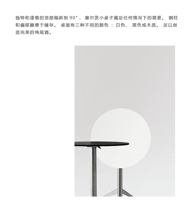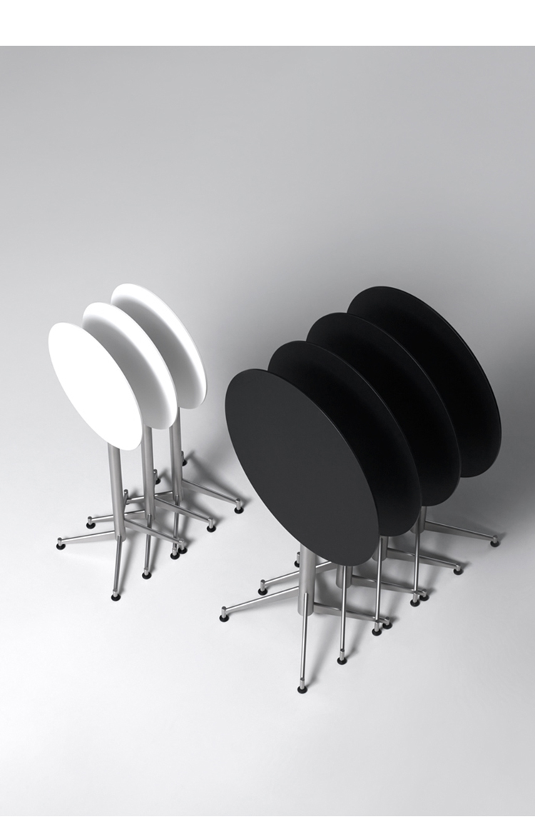 独特和谨慎的顶部可以倾斜到90°,塞尔茨小桌子满足任何情况下的需要。钢柱和偏移脚便于收纳和储存。桌面有三种不同的颜色:白色、黑色或木质。