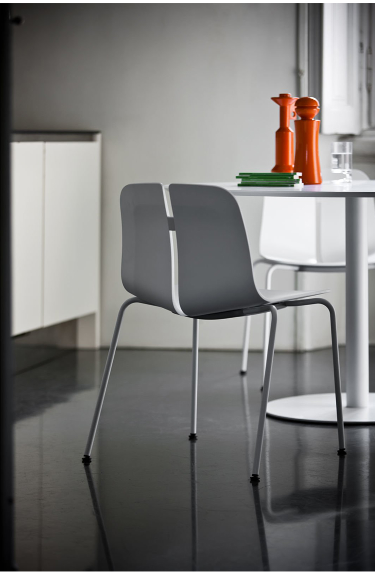 一个很小的间隙,一条线的中断,和连接的凳子形状。它是轻的,就像它狭窄的金属底座和木质座椅所暗示的那样,轻轻弯曲形成靠背。在自然的木材版本,纹理加强了柔软的轮廓和拥抱像一个非常新鲜的叶子,突出其结构的轻盈性。