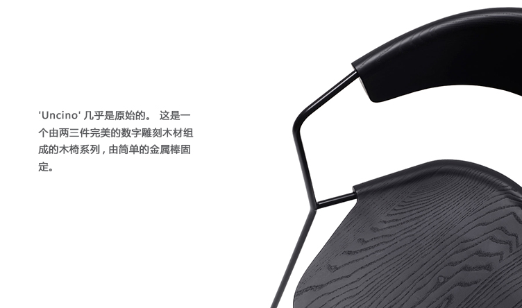 “通过Uncino系列,我们继续与Mattiazzi合作,以及手工雕刻木材和数控铣床的想法。