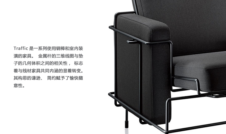 由Konstantin Grcic为Magis设计,休闲家具的交通系列提供了对比的研究:硬和软,线性和体积,俏皮和复杂。 钢制杆架具有平行和交叉线,为每个部件带来能量。 靠垫块,整齐地用布料或皮革装饰,传达出舒适和平静的感觉。