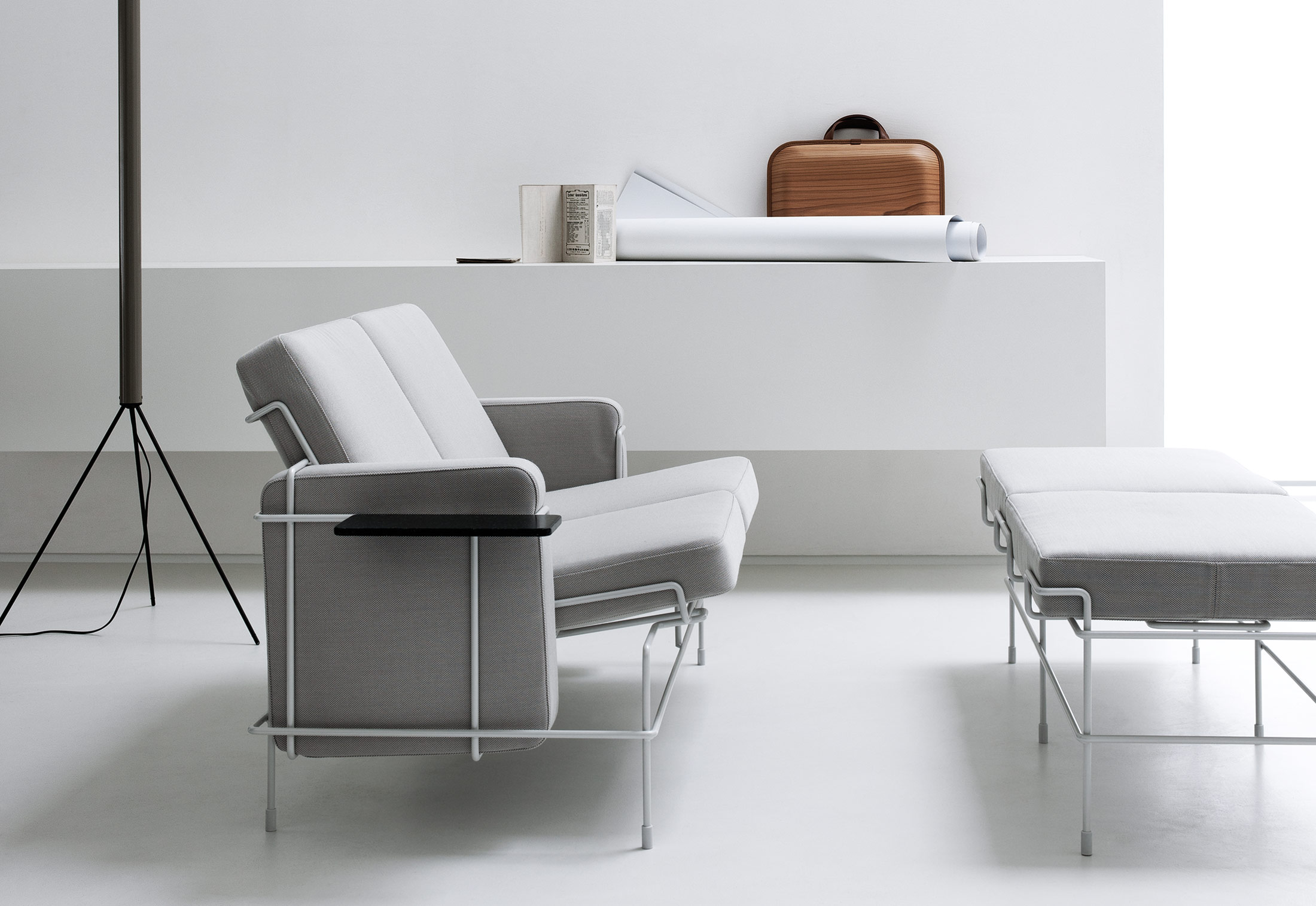 由Konstantin Grcic为Magis设计,休闲家具的交通系列提供了对比的研究:硬和软,线性和体积,俏皮和复杂。 钢制杆架具有平行和交叉线,为每个部件带来能量。 靠垫块,整齐地用布料或皮革装饰,传达出舒适和平静的感觉。