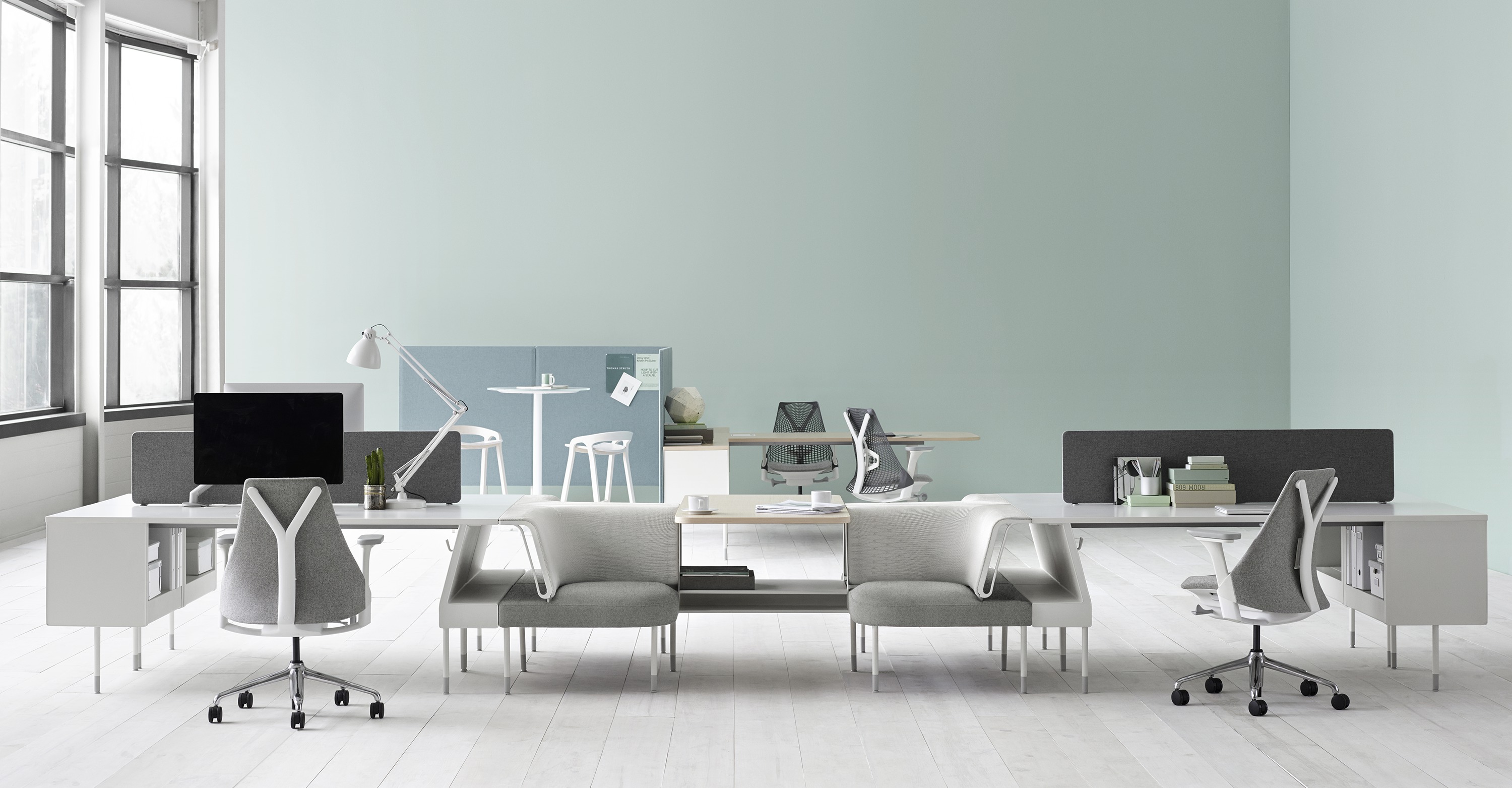 Public是首款支持非固定工作方式的办公系统,并且能在办公桌,流动空间以及团队区域内提供最大限度的舒适感,同时所有组件均纳入一致性设计理念。视觉上精致统一,模块化表面、储藏和座椅可根据您的需要采用各种配置方案,便于实现团队合作与个人工作的流畅转换。