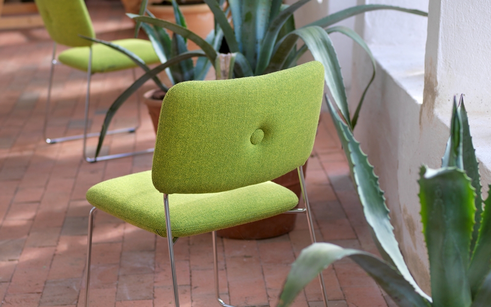 Dundra椅子-Dundra椅子是围绕镀铬钢框架构造的,带有模制座椅,然后进行软垫。带盖按钮是该家具系列的标志之一,有助于确保靠背保持其预期的形状。Dundra椅子是酒店内的餐厅,酒店和图书馆的绝佳选择。镀铬钢框架。模制聚氨酯泡沫的座椅和靠背。织物或皮革覆盖物。塑料支脚。绿铬(铬III)。其他饰面也可提供带CMHR泡沫的版本。座高465 mm,总高695 mm,座宽555 mm,总宽680 mm,座深550 mm,总深720 mm。