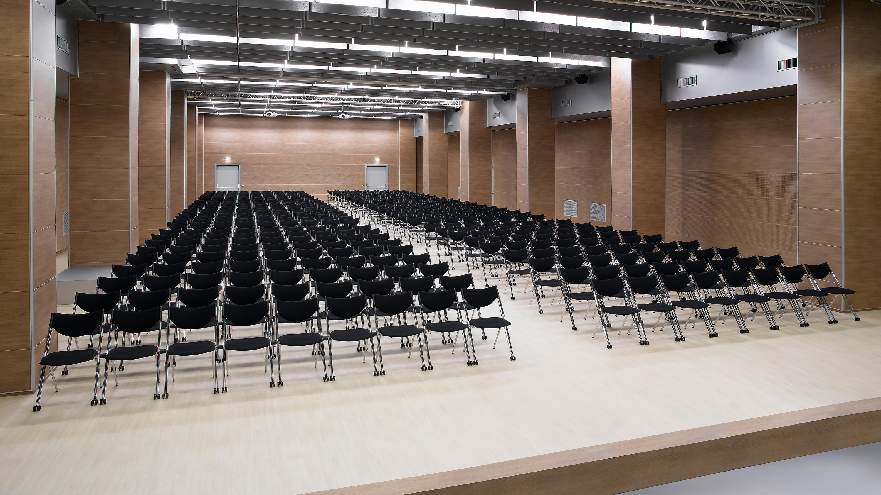 座椅系统提供固定或折叠式版本,带有手动或自动弹簧结构。座椅和靠背采用聚丙烯,榉木胶合板或聚氨酯泡沫衬垫和织物覆盖物,具有多种颜色。它也具有与特强钢梁相同的特性,配备固定的或倾斜的2、3或4个座位。