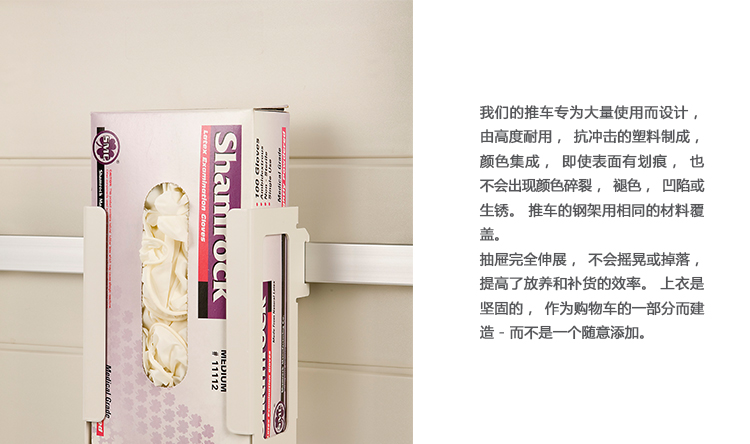 医疗环境要求不断变化。这些坚固耐用的手推车是为了满足你今天的需求,并随着你的需求而改变。模块化购物车系统意味着通用尺寸和易于互换的抽屉和附件。