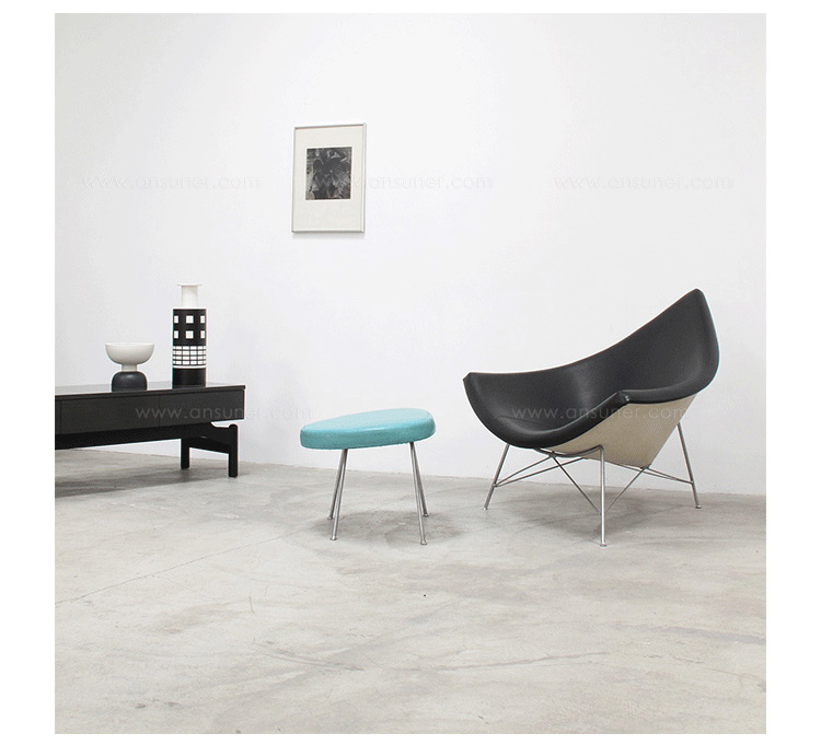 玻璃钢休闲椅——椰子椅(Coconut Chair)是由George Nelson设计工作室创作的。George Nelson将椰子分为八个部分,取其中之一作为椅子的外形。椰子椅(Coconut Chair)凭借着它可爱的造型、精简的结构和极大的视觉冲击力,改变了美式家具的外观和人们对它的印象,成为20世纪50年代的一个设计经典。