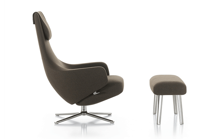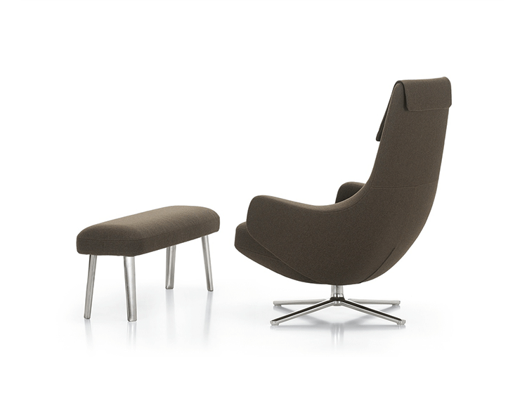 repos lounge chair and ottoman(repos休闲椅&脚踏)由设计大师Antonio Citterio所设计。repos系列休闲椅采用钢制铝合金脚架、聚氨酯海绵填充、高级布艺扪面,可随意调整坐姿和高度,也可以放平躺,配上舒适的羽毛衬垫,无论阅读或者休憩,都非常舒服,符合人体工学,高档舒适,是办公,会议的理想选择。意大利设计师和建筑师 Antonio Citterio赋予了这边椅子永恒的优雅气质与无与伦比的舒适,是当代设计的经典,无论用在办公、商业、家庭都是非常高贵大气的。