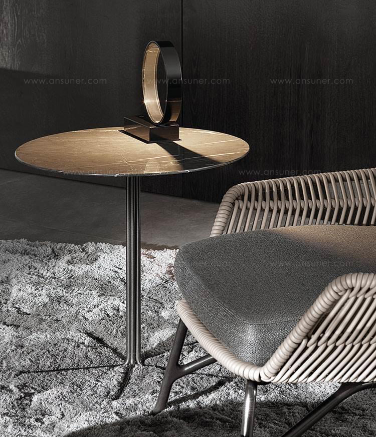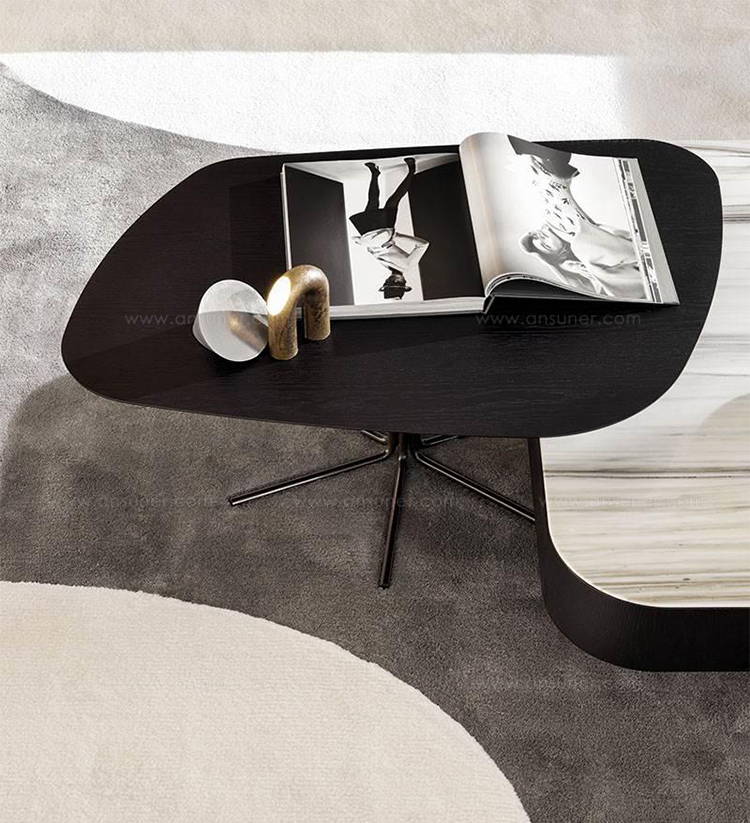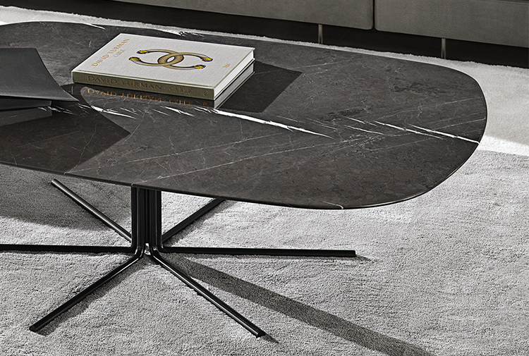 光线茶几是由其薄的厚度和空灵的结构来定义的,光线表是由顶部以不规则或圆形的有机形状完成的。这个放射状的底座,由一捆金属杆组成,可以垂直折叠起来,支撑顶部,在大理石或木头上。