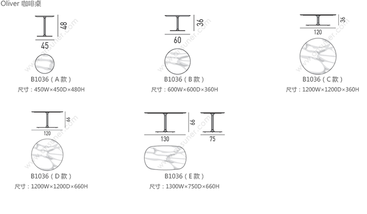 Oliver 咖啡桌 系列尺寸/示意图