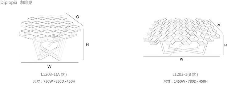 Diplopia 咖啡桌 系列尺寸/示意图