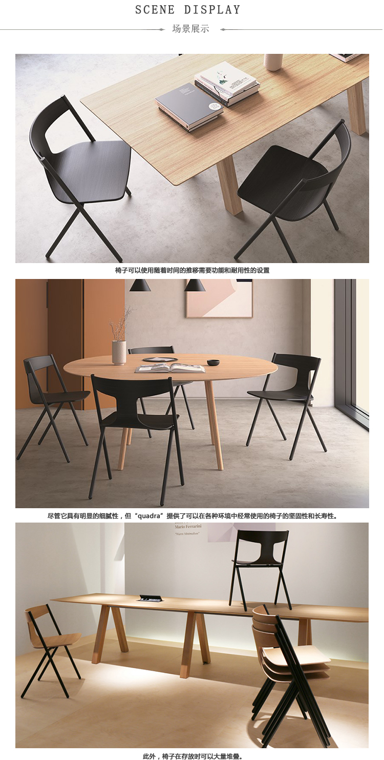 以创造连贯和平衡设计的愿望为指导,Mario Ferrarini的细致工作塑造了一把精致合成比例的新椅子。其金属结构的形状清晰地表达了指南针的优雅和通常在建筑领域中发现的绘图员广场的完美。Ferrarini的新设计是一个方便的选择,适用于需要卓越功能和耐用性的项目(教育空间,咖啡店,会议室,家庭......),还可以大量堆叠。在比喻上,Quadra由两个配置文件组成,可以完美和谐地相互补充。两位与建筑空间对话的舞者,缩小了他们的位置并创造了一种以结构形状测量的运动,其中增加了一个木制座椅作为对位和温暖的来源。没有任何可见的螺钉,它提供了可以大量使用的椅子的坚固性。