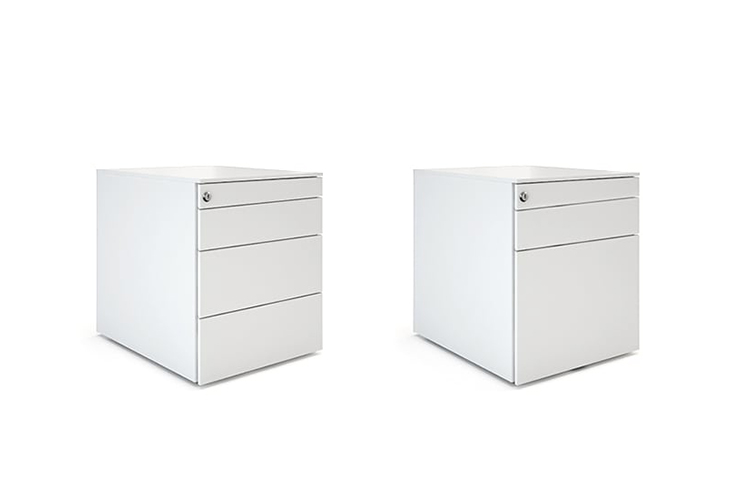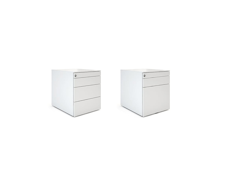 带脚轮,两个抽屉和一个填充柜的存储单元。由于其极简主义的设计,它特别适用于个人工作空间。