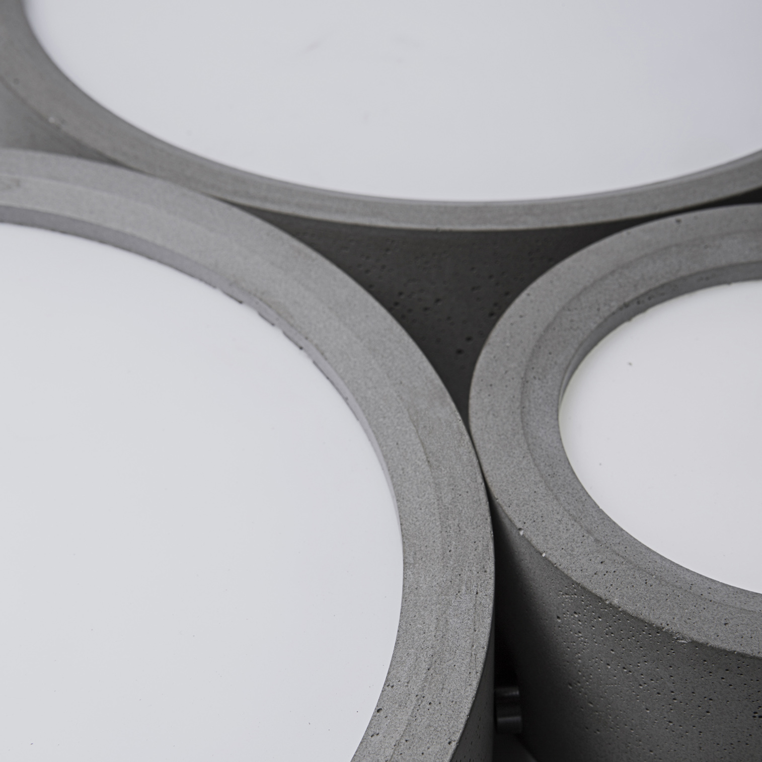 “环”没有夸张的造型与华丽的装饰,安静地为我们点亮一个个空间,它的美来自水泥材质的本身,水泥材质安静、低调、包容可以更好的在空间中搭配。