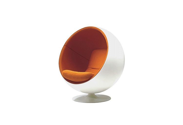 设计师艾洛·阿尼奥在 1963 年设计的,球椅结构简单,上边是用半球,下面是旋转的支撑脚,球椅(Ball Chair)球椅可以360度旋转。可以附加带喇叭MP3,香水味,彩光灯等功能,这种设计让消费者有眼前一亮的感觉,这设计也为家具厂商带来了一次巨大的商机,所以球椅(Ball Chair)也开始被大量的生产,它的诞生来家具设计提升了一个高度,让设计者重新审视了自己的设计观念。