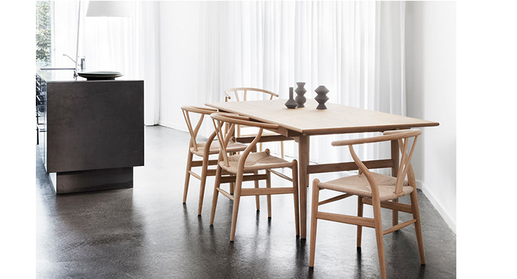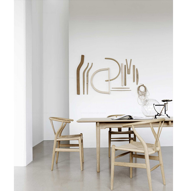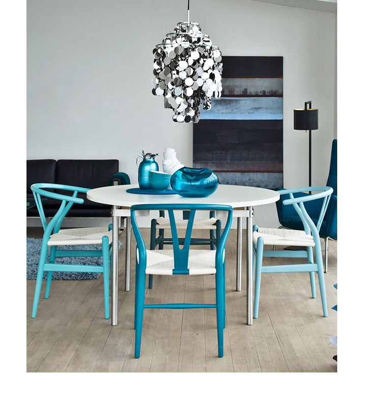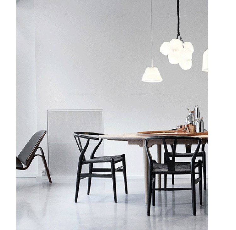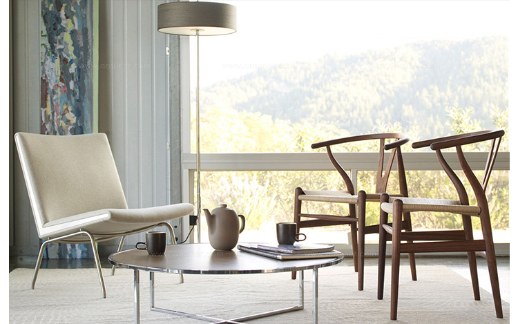 Y椅子是Hans J.Wegner最著名的作品。 它具有重量轻、有吸引力、舒适、中式风格等特点。 该款设计灵感来源于中国传统家具,四平八稳,古色古香,大气自然。上圆下方,浑然天成,深受中国顾客喜欢。Y椅关键在于是工艺与简约的设计,有着清晰的线条。 尽管椅子简约的外观要超过100个步骤进行。除其他事项外,手工编织座垫超过120米的线。 材料有丹麦硬木(橡木,榉木,水曲柳)以及北美硬木(胡桃木,樱桃木)等。外表可漆成各种各样的颜色。 垫子的座位可以添加额外的舒适。