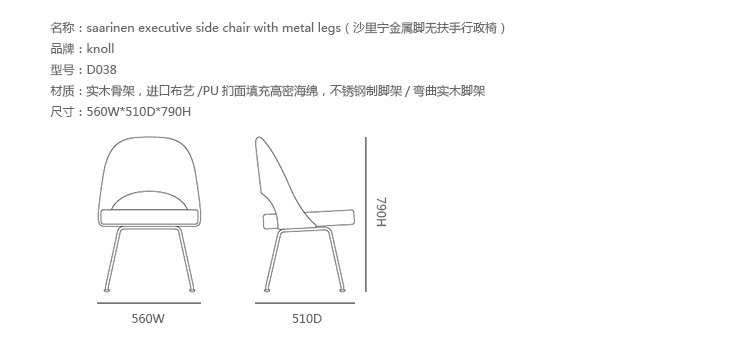 创意家具 - 坐具|餐椅|办公家具|设计师家具|沙里宁金属脚无扶手行政椅