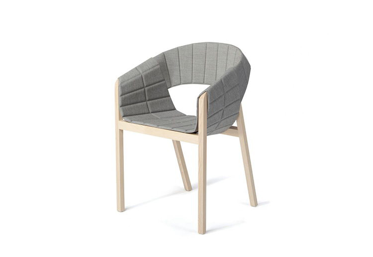 The armchair is a stylish piece of furniture that can change its appearance at will: the essential innovation of the armchair is its cushioning, which lies over the supporting structure like a ceiling. The precisely manufactured pieces of fabric are fastened with snap-buttons, which allows easy replacement and radical alternation of the chair's impact using colour changes. The base is made from minimal wood cross-sections and features the hallmark of Jörg Boner: an appearance that is both graceful and sturdy.
