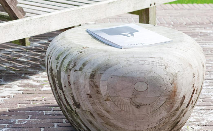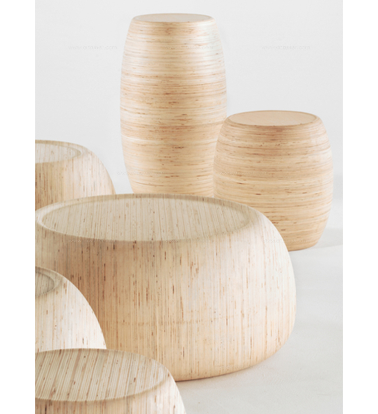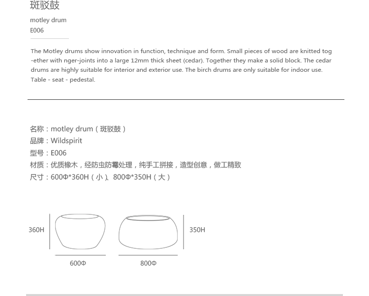 The Motley drums show innovation in function, technique and form.Small pieces of wood are knitted together with nger-joints into a large 12mm thick sheet(cedar).Together they make a solid block.The cedar drums are highly suitable for interior and exterior use.The birch drums are only suitable for indoor use.Table-seat-pedestal.