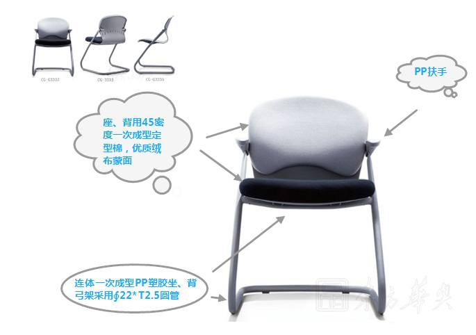 A:座、背用45密度一次成型定型棉,优质绒布蒙面。