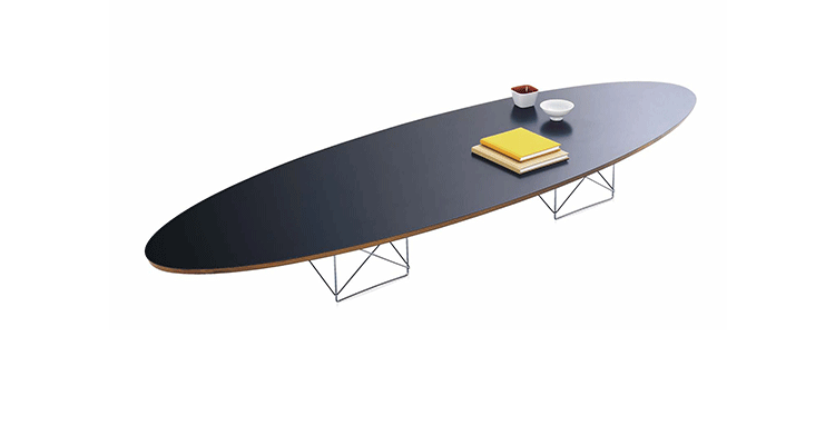 Charles和Ray Eames 夫妇在1951 年设计大型桌子时考虑过很多种形状,但是他们最终选择了椭圆形。这让人很容易联想到冲浪板。这也和Eames 夫妇住在位于加利福尼亚州、太平洋边的公寓和工作室有关,从这里可以眺望到他们喜爱的大海。Eames 椭圆桌的特点是低和长,可以放在长沙发或几张椅子前面,非常舒适。您可以将它放在卧室、会客室或是办公休息室,在宽敞的、不拘一格的桌面上,陈列精美的艺术品、新鲜的花、杂志或是专业书籍。"