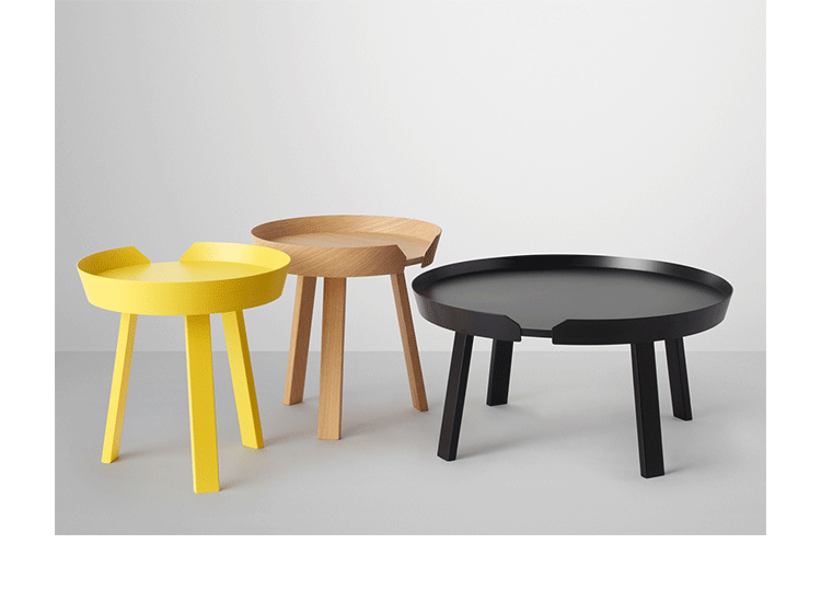 Around 边几/咖啡桌系列是丹麦设计师 Thomas Bentzen 2011 年发表的作品,结合简约外型与多样功能性,加高的桌缘设计减低桌面物品掉落的机会,是款相当平易近人的设计且容易搭配。设计师 Thomas Bentzen 在设计这款咖啡桌时说,希望可以寻求一种友好、优美的风格,这款小巧简单的咖啡桌很具有现代感,而且将不同尺寸多个组合在一起是个不错的选择。