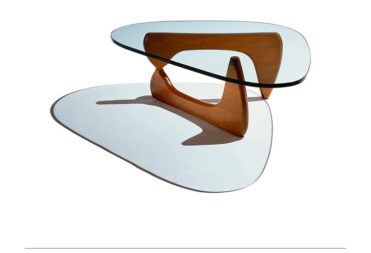 "日裔美国人野口勇(Isamu Noguchi,1904-1988年)是20世纪著名的批判性学院派雕塑家之一,是最早尝试将雕塑和景观设计结合的人,他的设计将东方的空间美学,融入到西方的现代理性当中,充满了传统和现代融合的大胆创新。野口勇设计的著名家具——Noguchi Coffee Table (野口勇咖啡桌/三角茶几)是以其独特的设计和广泛的适用性至今还深受人们欢迎。1948年,日本裔设计师野口勇设计了这张闻名于世的野口勇咖啡桌。雕塑般桌脚由实木制成,配上水滴状的玻璃桌面却能产生一种化学反应。这就是它在60年后,仍是最热的畅销品的原因。咖啡桌的由ABS/实木桌脚(水曲柳/桦木),可选黑色、原木色、胡桃木色,钢化玻璃桌面,结构稳定,不会摆动。"