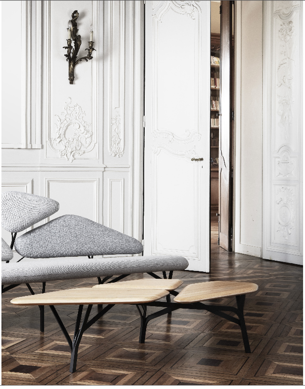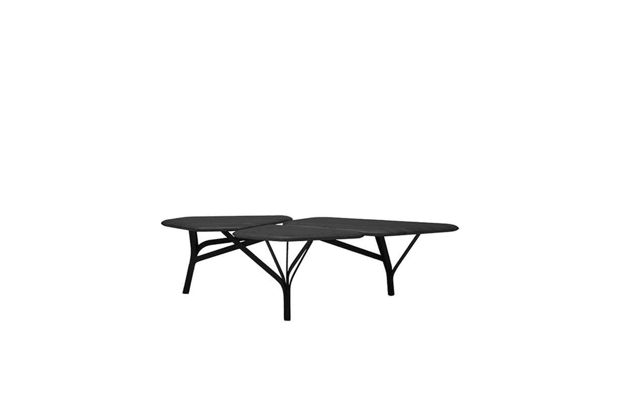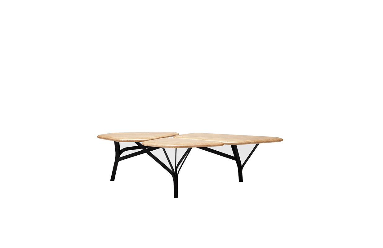 “波”是一个咖啡桌的灵感来自于石头松树波勒兹别墅的罗马。 金属结构繁殖的分支网络和支持三种木质表面。 表可以组合组合和成长这国内的树冠。