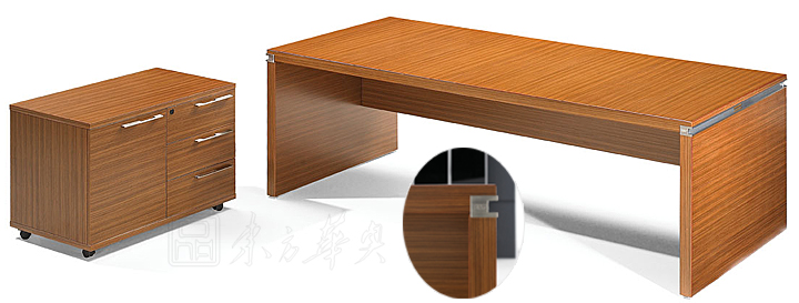 ※ 上图为大班台不同场景使用图,可以根据需要定做不同规格,也可配置不同的侧柜!矩形主台设计,线条简约流畅,带有活动皮垫,预设多功能线路管理系统,凹形铝合金边框突显出台面与台脚之间的层次感,并巧妙地处理了木纹对接的工艺,台面含有内藏式钢架以保证强度。采用横纹方向的设计,层次感更加分明,木的纹理和质感表现更为淋漓尽致,色泽温暖而自然.