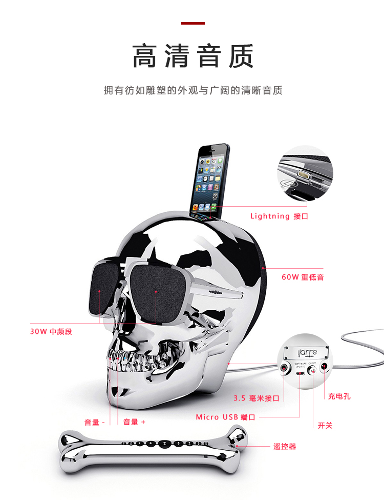 JARRE TECHNOLOGIES音频工程设计与时尚精神、时装潮流成功结合,产生了经典的AeroSkull HD+音箱。