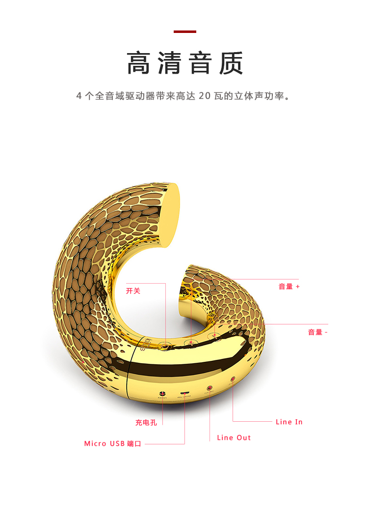 当它在桌上或手提包提手处扭动转动、打开闭合时,空灵音质绝不受影响。4个全音域驱动器带来高达20瓦的立体声功率。