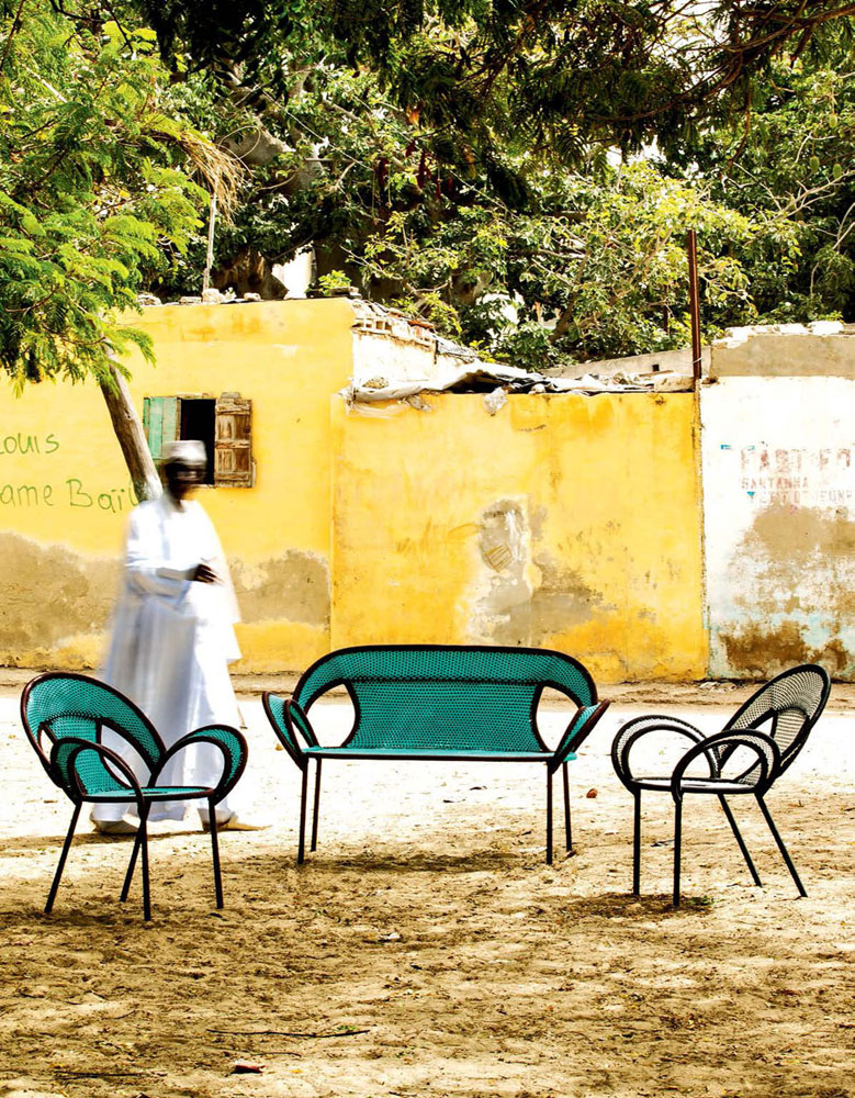 这个椅子的形状,尤其是扶手的形状设计,灵感来源于雄性鸵鸟在求偶时所跳的舞蹈,banjooli的扶手如同雄性鸵鸟伸出了翅膀,向雌性展示它们的美丽。Banjooli是M 'Afrique的一部分,由设计师设计的一系列椅子,由非洲手工编织者使用渔网的纱线生产。纯手工编织,不完美,但真实。