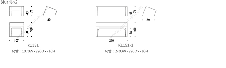 Blur 沙发 系列尺寸/示意图