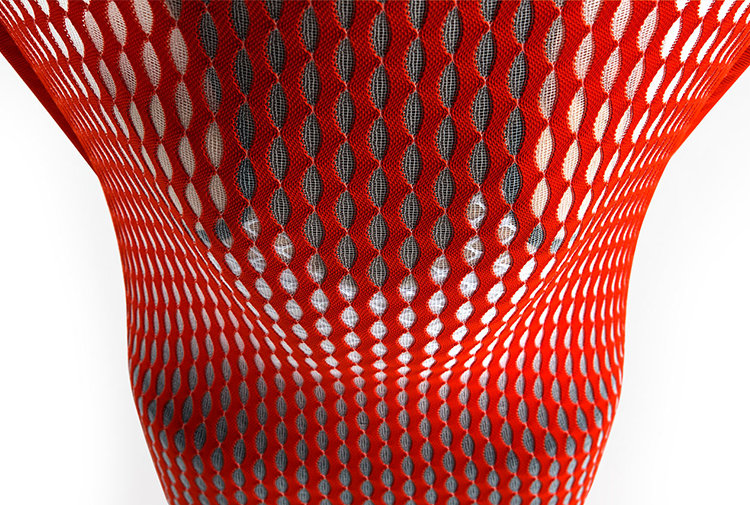 “摇篮”是两种类型座位的独特组合;一个网状结构吊床和一个传统的软垫沙发椅。扶手椅源于工作室的材料驱动、工艺主导、工业设计方法、网格材料的构建研究,以及传统座椅组件之间的关系研究。“摇床”采用了一种定制的剪裁模式,允许非弹性织物以三维的方式进行。这允许正确的张力,舒适地支持身体和视觉上和身体上减少产品的重量。