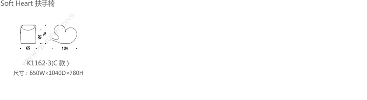 Soft Heart 扶手椅 系列尺寸/示意图