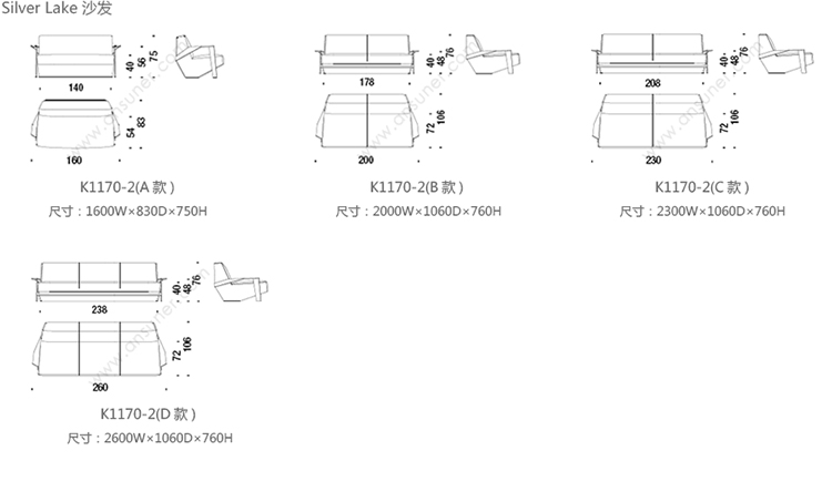 Silver Lake 沙发 系列尺寸/示意图