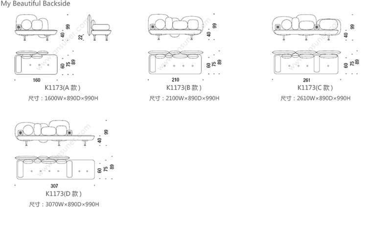 My Beautiful Backside 系列尺寸/示意图