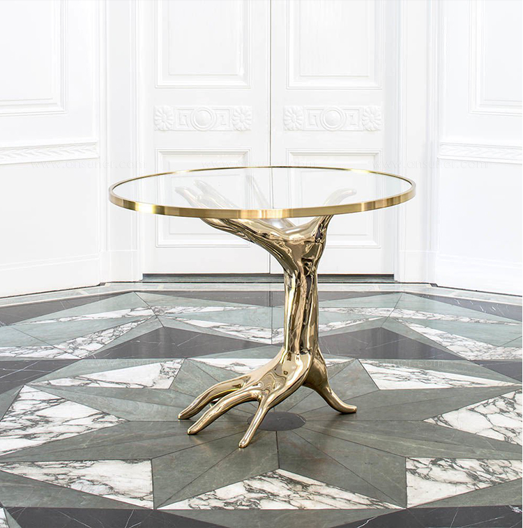 豪华雕塑的Dichotomy桌是一款令人惊叹的独特陈列桌,灵感来自古典的比喻装饰。 底座采用青铜铸造,手工精心打磨。 钢化玻璃顶部采用匹配的青铜饰边。 直径36英寸,这张桌子是一个完美的入口,或强调一个正式的座位群。 Dichotomy桌有青铜或油擦青铜饰面。